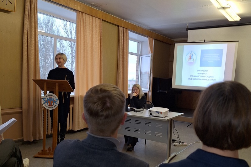 Представители ГБКУЗ ЯО «Центральная городская больница» в лице главной медицинской сестры Гаевой Анны Павловны и руководителя кадровой службы Волынкиной Оксаны Вячеславовны выступили с презентацией о преимуществах работы в данном учреждении и рассказали, какие имеются вакансии среднего медицинского персонала.